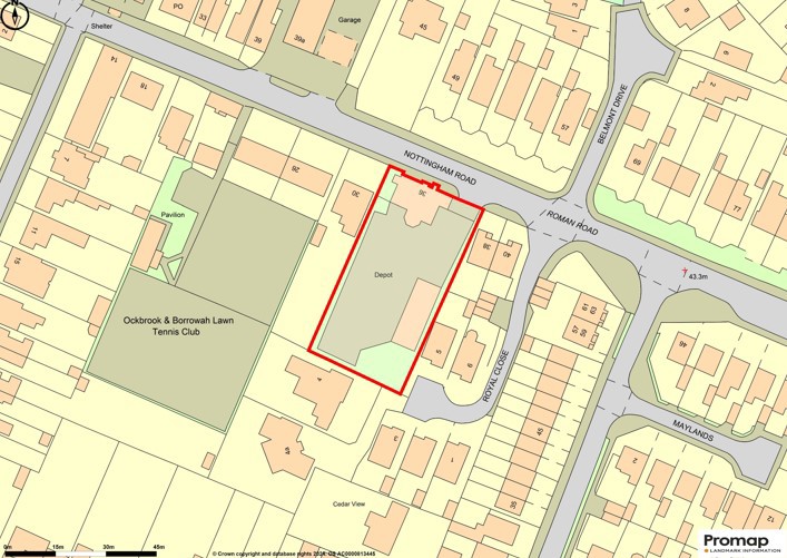 The plot is of broadly level topography and is made up of both concrete and hard surfaced areas. Additionally, the site is fully enclosed by predominantly timber fencing which incorporates a gated entrance off Nottingham Road to the north east.