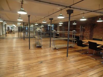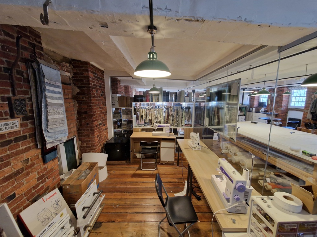 - Characterful workspace featuring exposed brick, timber beams and original mill details.