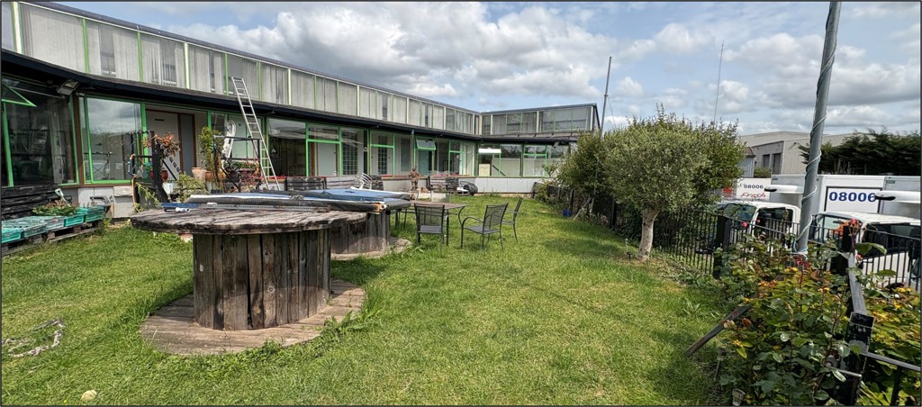 The premises comprise a 1970s built detached building designed by revered Architect Edward Cullinan. The building is of steel frame construction with blockwork lower elevations and upper aspects, with a striking pitched sheet roof supported by steel columns.